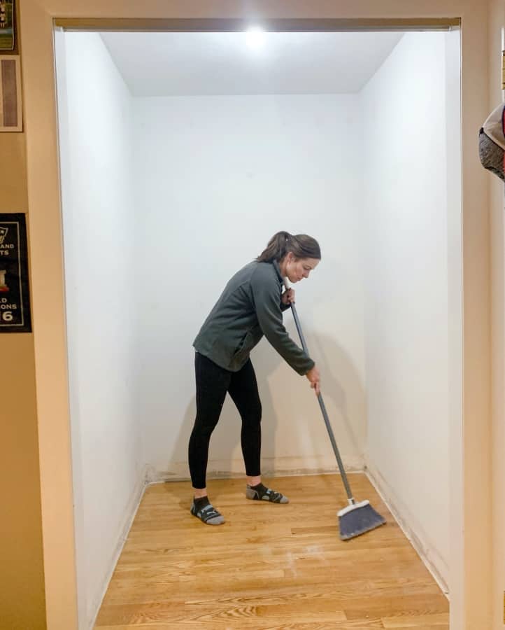 As you can see here in the before photo, this closet started as a complete disaster zone. It’s a good size but the organization and set up just wasn’t right for the space. So I ripped everything out and started from scratch.