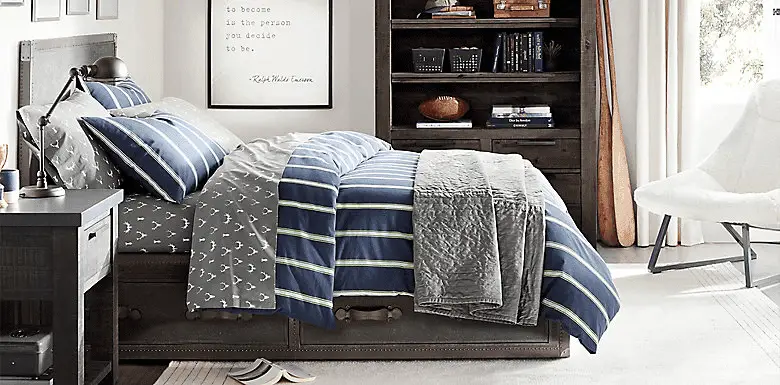 Next up, drawers. I found a couple of inspiration pictures on Restoration Hardware teen and I really fell in love with this bed that resembled an old trunk. I just love the vintage rugged details!