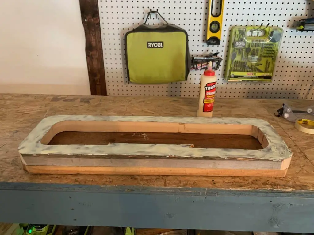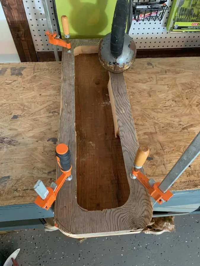 Glue your cut out top board to your bottom board. Be generous here with the wood glue. Clamp in place and let dry for at least 24 hours.