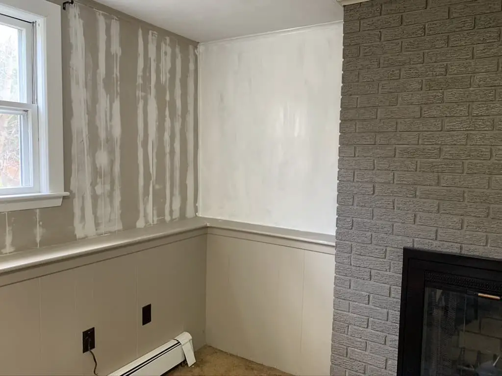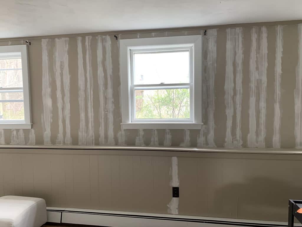 Can you believe with just a little elbow grease, joint compound, and paint you can update wood paneling to look like regular drywall?! No need to rip it all out and drywall, just fill the ridges and be on your way! It’s a major time and cost saver.